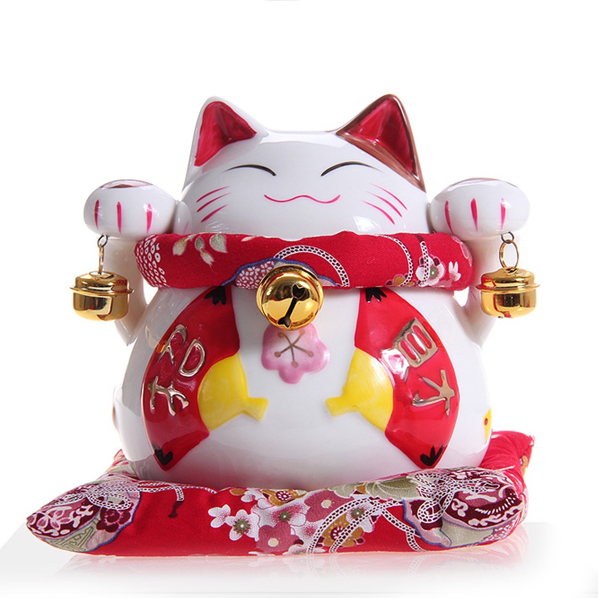 这款招财猫存钱罐采用优质陶瓷制成,手绘图案,高度为5.9 inch。猫咪手上有两个可爱铃铛,附赠一个小枕头,快来存钱吧!Amazon五星好评产品哦~多款图案可选推荐产品