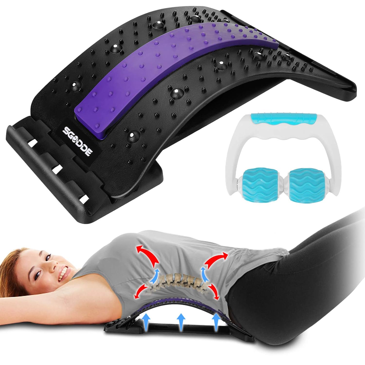 专为久坐族、上班族、学生族、司机等腰背易酸痛者所设计,这块符合人体工学弧度拉伸原理设计的针压按摩拉背器提供三段高度,每次使用20分钟,每日两到三次,有助舒缓下背肌群与紧绷肌肉,上方有96个凸点及10个磁力点设计,可以为你带来指压式的舒适按摩体验。整体采用 ABS 量轻耐用材质,最大可承重220磅,腰酸时可以可躺着伸展腰椎,也能放在椅背矫正姿势,避免驼背。