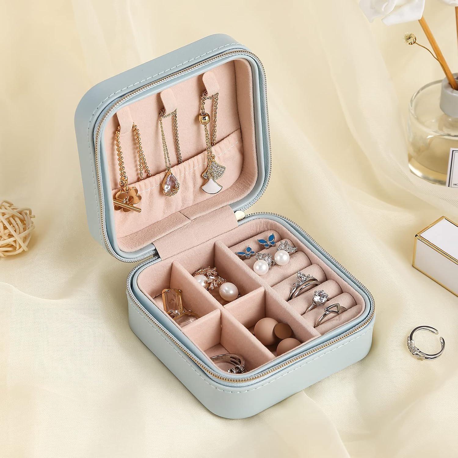 如果你外出旅行携带首饰珠宝,如果没有好好摆放很容易项链大打结或是耳环掉了一边。这款 Casegrace 便携首饰盒评价非常高,现在勾选折扣码可以享有小折扣优惠,只要 $7.99 即可入手。拉链的设计非常好开关,内里为柔软的皮革,可以好好保护里面的珠宝首饰。盖子上有勾项链的钩子还有可以放手链的小口袋。下方则有可以放戒指的空间以及旁边的隔层,可以放耳环或是其他小样的物品。隔层可以拿出来,如果是要放比较大型的珠宝或口红也没问题。拉链式设计不用担心放包包或行李箱不小心打开,可确实防尘防氧化。