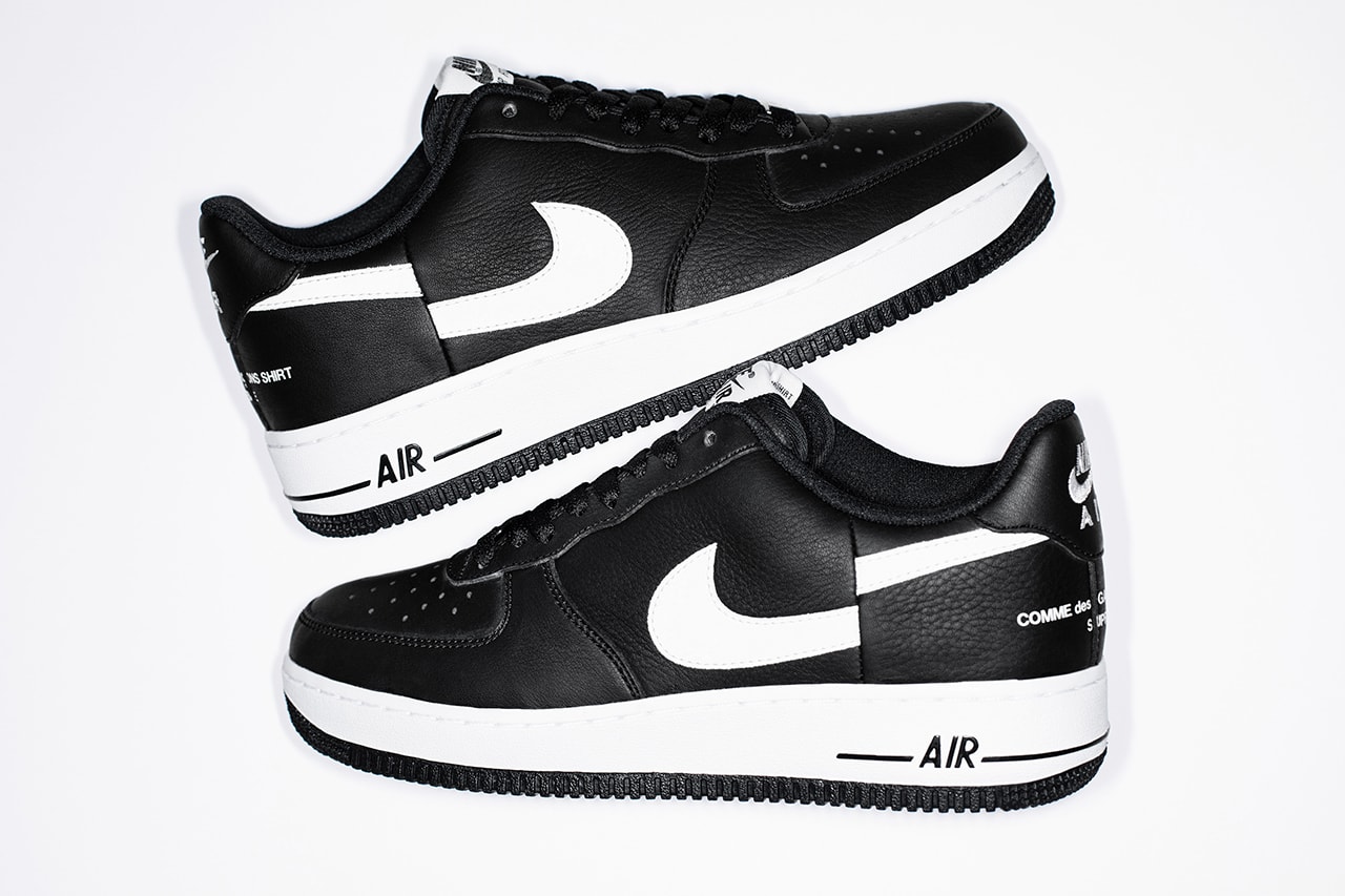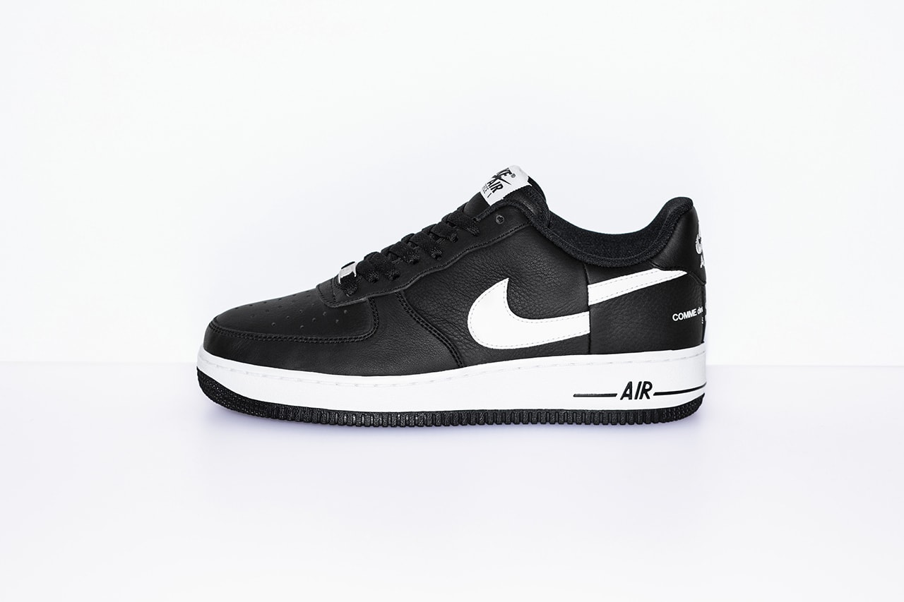 The Supreme x COMME des GARÇONS Shirt x Nike Air Force 1 ”Split Swoosh” 联名将在11/8/18在纽约、洛杉矶、伦敦和巴黎开售,售价尚未公布。