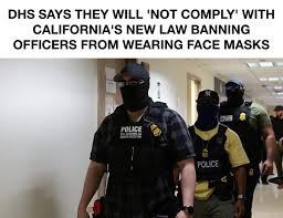 就在加州州长加文·纽森(Gavin Newsom)签署一项法律,禁止大多数执勤警察(包括联邦移民执法人员)戴口罩几天之后,美国国土安全部(DHS)回应说,他们不会遵守这项法律。