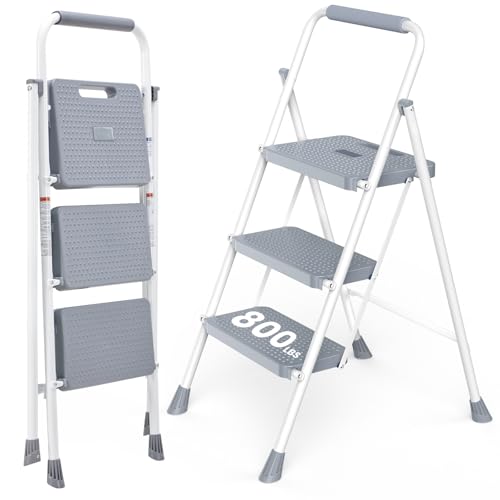 KMFurnila Step Ladder 3 Step, Folding Step Stool with Wide Anti-Slip Pedal